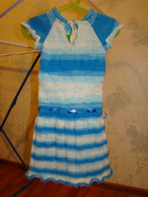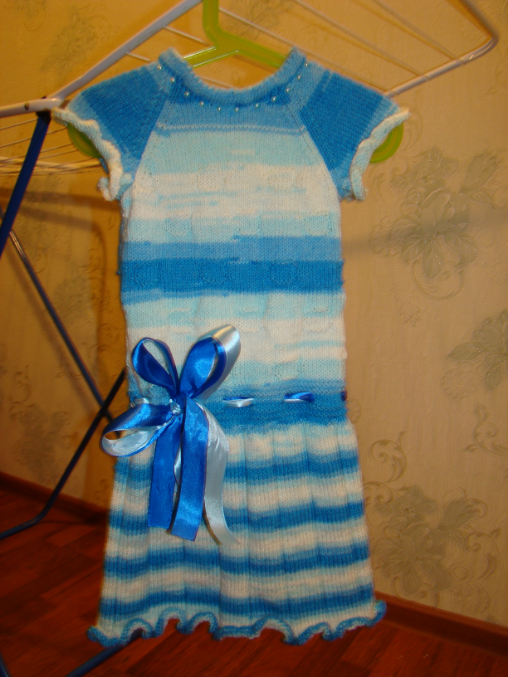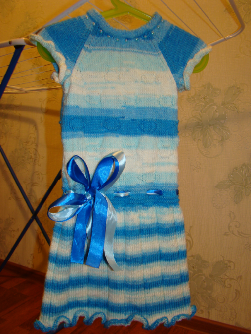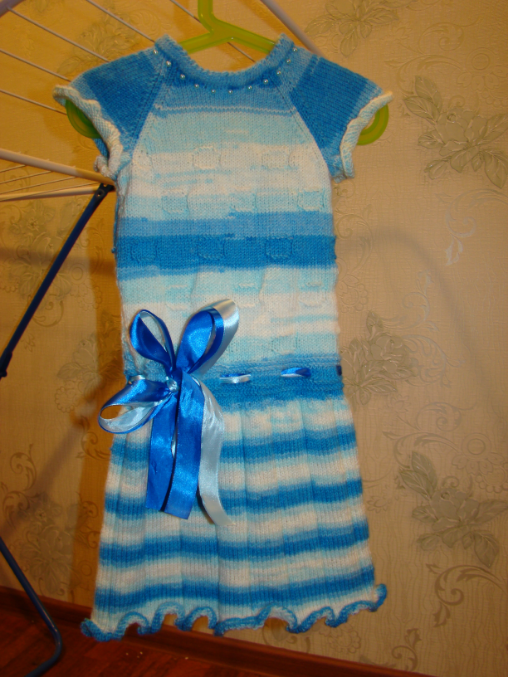 Платье просто потрясающее! Вы большая мастерица! Если разрешите, совет: вместо бантика сделайте жгут из тех ниток, которыми вязали, а на концах помпон-кисточку, будет смотреться еще стильнее!