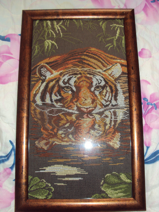 Давно не выкладывала работ, вышивать не бросила, просто не оформленные они смотряться не так. Видимо мое мнение несколько поменялось со временем ))) вот моя радость! давно как то выкладывала этого тигрульку, моя первая гордость )) вот он в оформлении