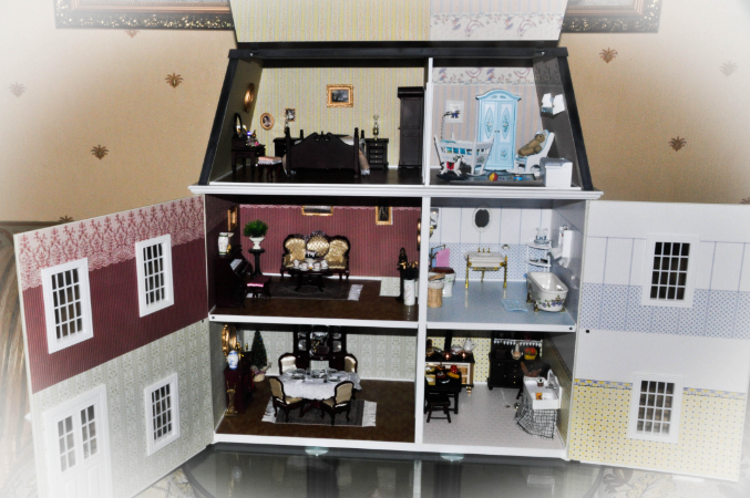 Нет, мои знакомые спокойно относятся ко всему чем я занимаюсь))) Тем более, у меня есть знатное прикрытие: домик якобы для племянниц двух собирала)))) В итоге стоит у меня в комнате и играюсь в основном я. Ну, не то чтобы играюсь, пока даже не всю мебель расставила (кое-что в переделке нуждается из-за заводского брака). Зато периодичекски покупаю что-нибудь симпатичненькое и пытаюсь что-нибудь делать руками.