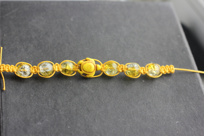 солнечный браслет из стекла кракле и черепашкой из говлита в желтом