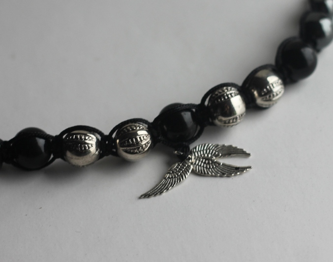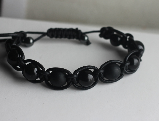 шамбала с акриловыми бусинами, гематитами, стеклянными бусинами краскле в нейлоновом шнуре (нижний)