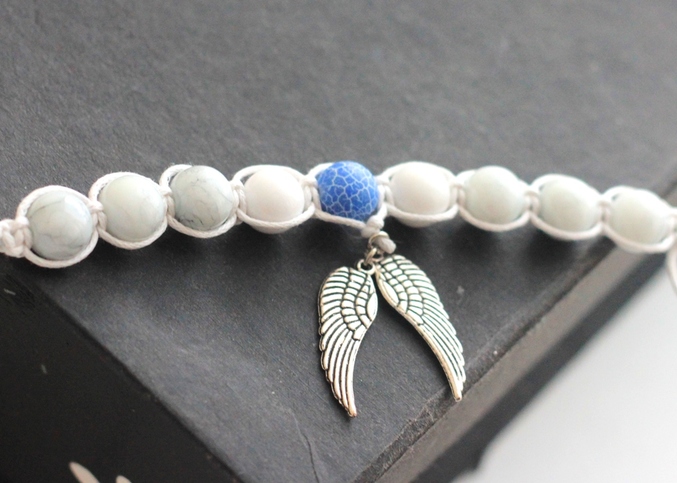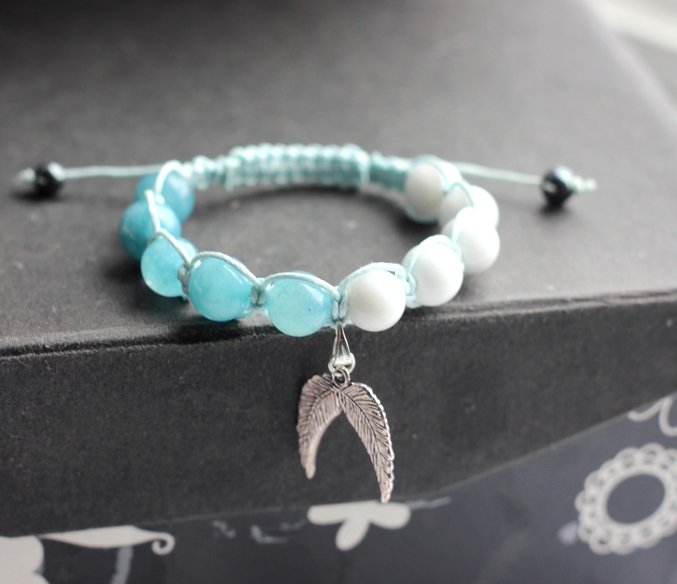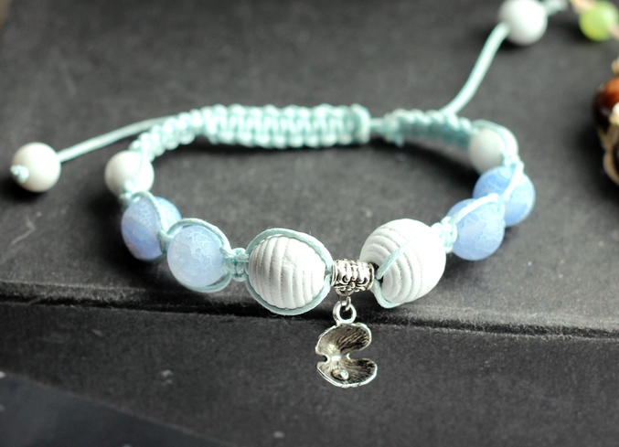 двойные браслеты шамбала : натуральный белый агат + бирюза