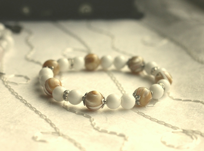 браслет в карамельных тонах - как самостоятельно, так и дополнение . Натуральные камни - агат, перламутр