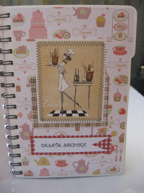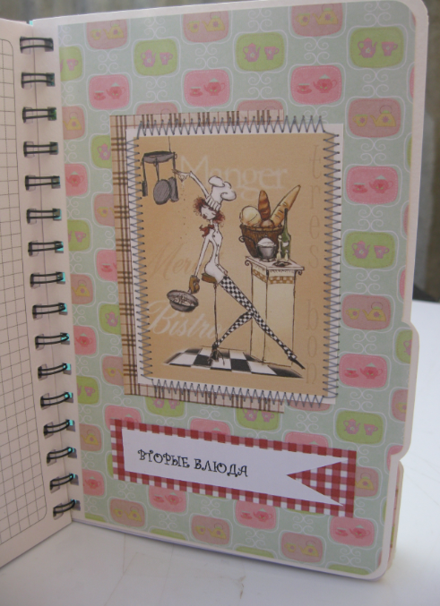 СкрапбукингЗадекорировала тетрадь под кулинарный блокнот. Разделителей 4, Основа для разделителей акварельная бумага. Не буду томить текстом, смотрим...