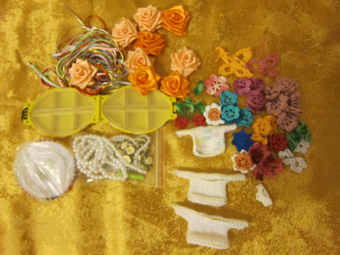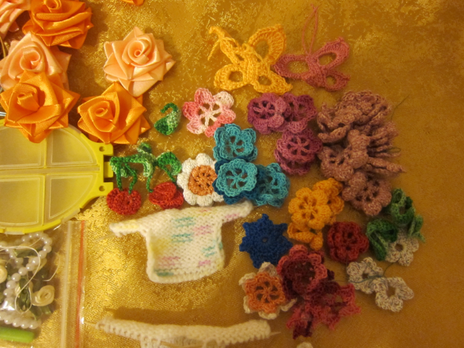Тут и розочки ( волшебные просто), и вязанные миниатюрки , такие уютные и аккуратненькие, органайзер для мелочей, тесёмочки, декоративные булавочки!!!! ААААА!