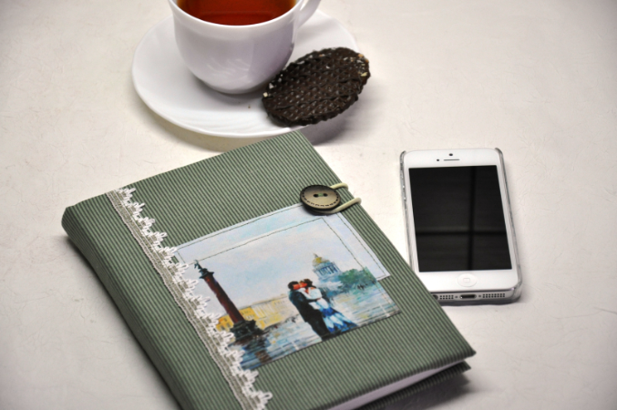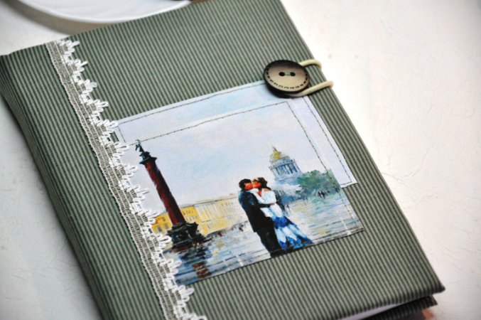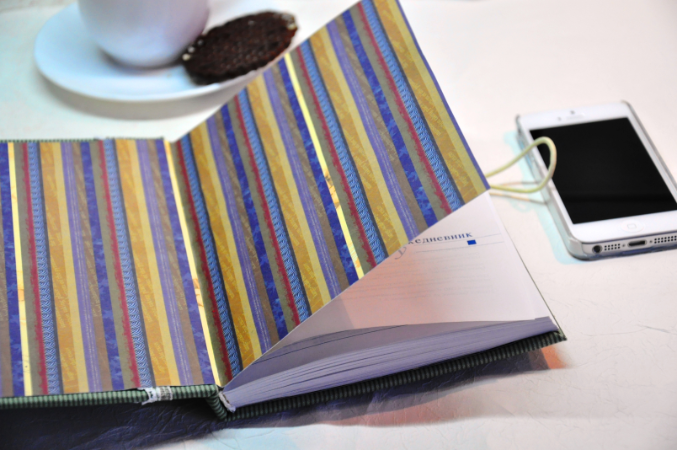 Ну вот и я не сдержалась...сотворила. Практически новая обложа для паспорта была нечаянно мной испорчена, сначала расстроилась, а потом решила - судьба, ежидневнику быть! Ткань, конечно для первого раза не простая, надо было не перекосить...полосочка к полосочке, в общем и целом вроде результатом довольна, теперь чешутся ручки на блокнот с нуля. Спасибо огромное прекрасным мастерам