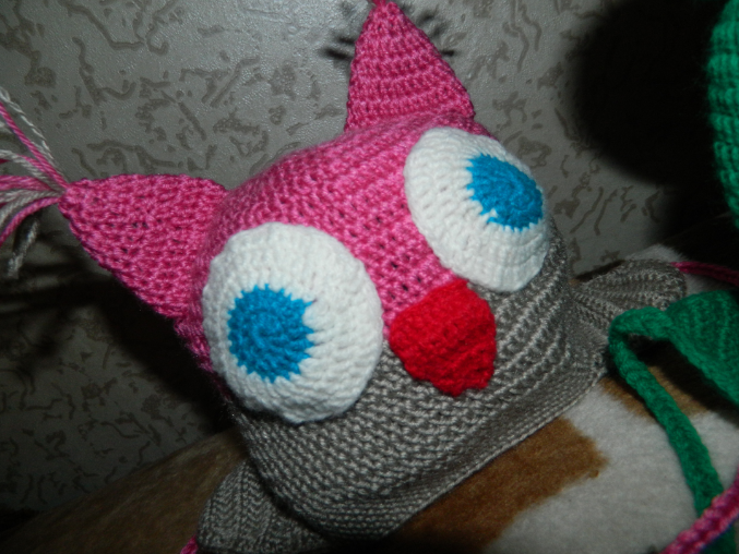 Хорошенькие шапочки! Только я бы совушке еще черненькие пуговки-зрачки пришила)))