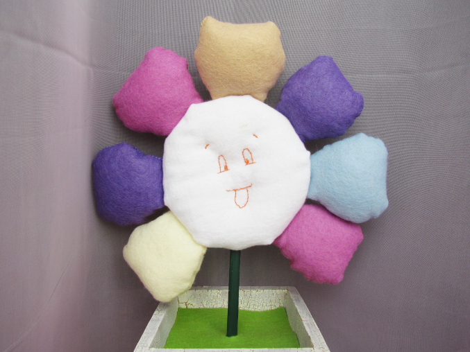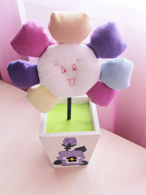 Идея хорошая, но если бы вы сделали более живое лицо у цветочка( разные цвета, а не одноцветная тонкая линия,возможно объемные глаза, такие продаются, или самой сделать ) было бы гораздо лучше