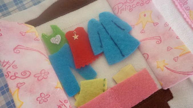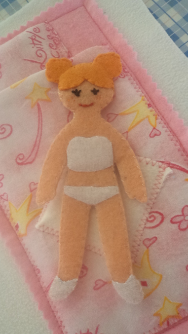 Маечка ,трусики и туфельки-липучка,поетому куколку можно одевать...и гулять с ней по страничкам книжки...