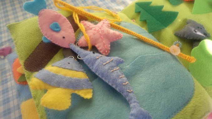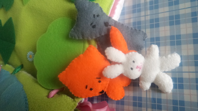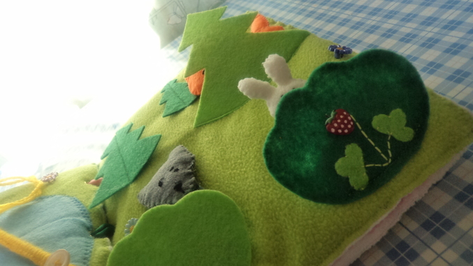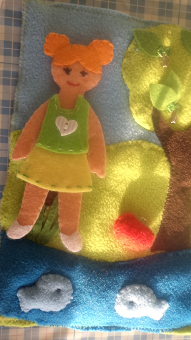 Понравилось то, что она почти полностью из флиса и переплет на люверсах! Если бы я шила книжку,тоже сделала бы каждый листик отдельным, мне кажется малышу так удобней с ней играть))) Съемных элементов как много! Здорово!