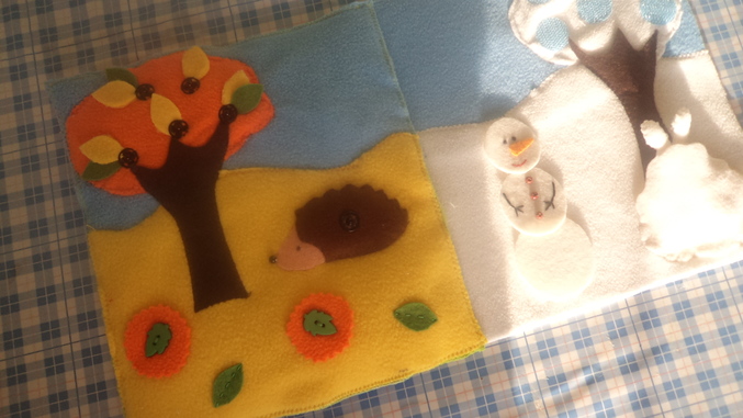 Следующие два разворота Времена года.Здесь учим смену сезонов и основные виды застёжек.