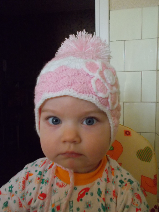 увидела у вас её))) оооч красиво)))) а у меня почему-то вот эти ракушки, или как их назвать,не ложились так ровно, а загибались как-то... может нитки не такие или что... я новичок в этом деле)))) это у меня третья шапка