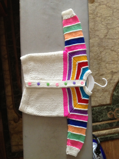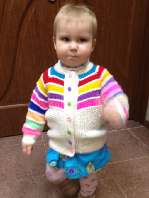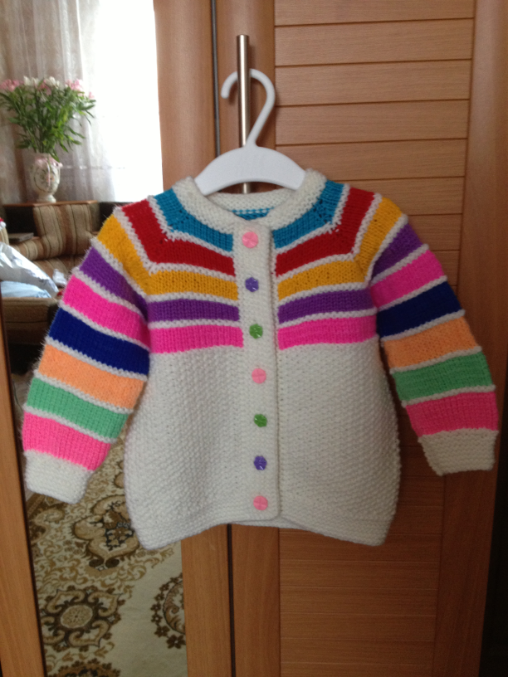 Всем приветик, сразу говорю спасибо всем кто залянул! А у нас опять обновочка вот такая радужная кофточка : ))) правда моделька ну совсем улыбаться отказывается-так что за качесто фото сори : )