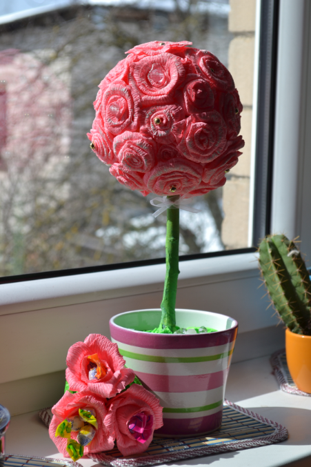 Я бы где нить на деревце бабочку посадила бы в тон, и все больше ничего и не надо. Если только в фазончике еще полусадик развернуть, травку положить из сизаля.