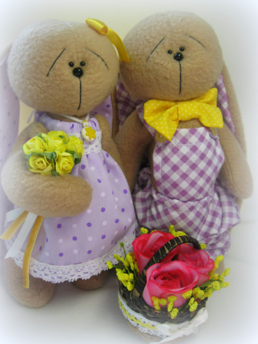 Очень часто заказывают в сереневом)))Поэтому сново парочка сиреневых зайчиков))