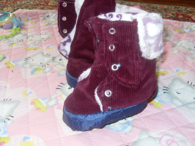 Шитье одежды, выкройки, ремонт одежды, шторы, швейные машины (уже приобретенные)Начала шить весенние сапожки своей малышке по мастер классу Ирины и Nola-Burg . и вот что получается, Комбезик у нас из велософта, такой же как на подкладе ботинок....вот только я затрудняюсь - какой цвет шнурочков подобрать? Может быть белый?