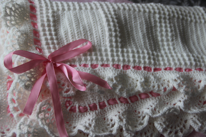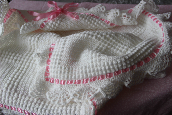 Конечно же пледик! успешно связан, оформлен, постиран, отпарен и упакован на выписку! о его красоте могу только следующее сказать - муж мой когда увидел отвернулся и промолчал, я сначала обиделась, а затем увидела скупую мужскую слезу...... :) этим для меня было все сказано.....
