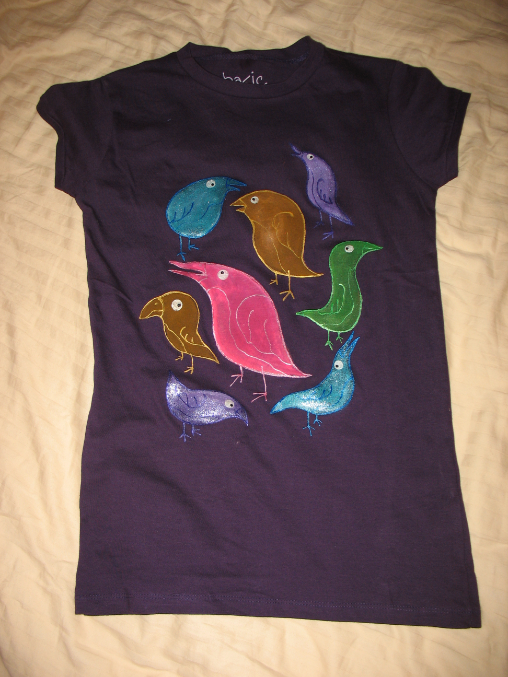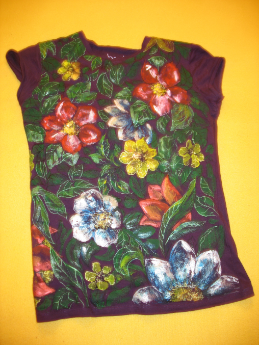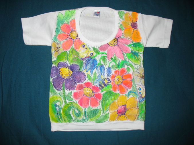 какие-то я забыла сфотографировать,подругам зарисовывала пятна на детских футболках смешариками и цвеами -машинками-животными....в целом приятное занятие и приятно.когда на улице спрашивают.откуда красота такая)