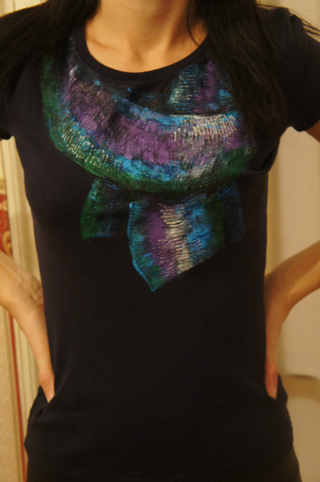Вам надо на заказ делать) я бы с удовольстием купила бы футболочку с шарфиком