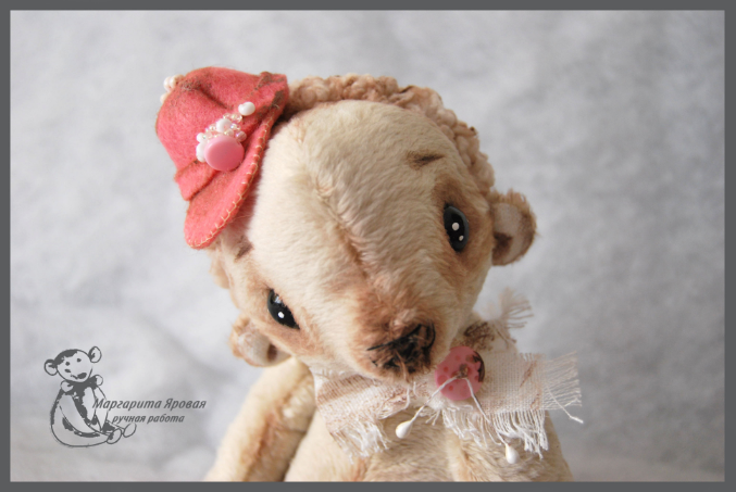 Я бы его описала,но что за ткань-незнаю...на ценнике было написано,но на радостях даже внимание не обратила. А так как всегда синтепон,акриловые краски,льна немного и фетра с бусинами.