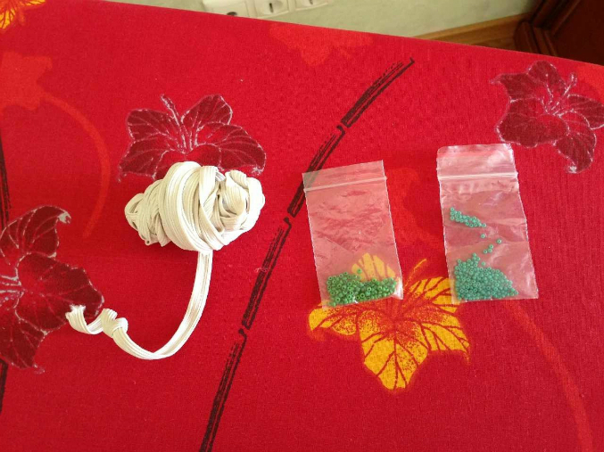 Резинка и немного бисера (есть еще оранжевый в таком же количестве и такого же размера)