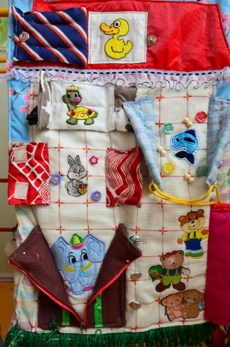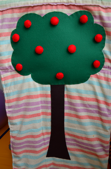 просветите неграмотную,что значит стороны меняете?этот домик нашит на плоский кусок ткани и весит где-то? на первой фото нечто похожее на стул..