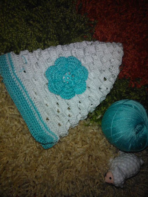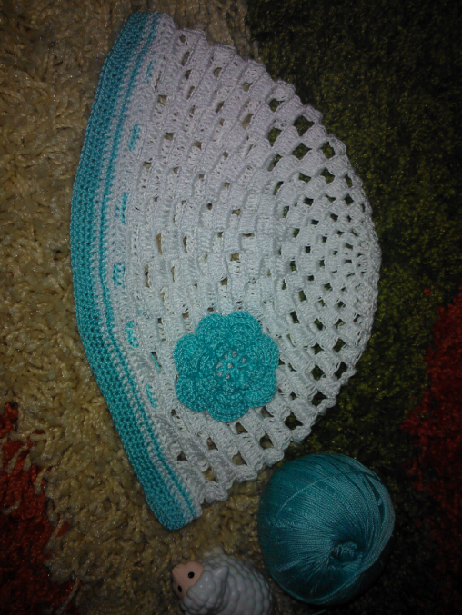цветочек самый 1 ряд состоит из 8 лепестков, потом 7 оказалось. увидела в конце, жаль было распустить... и не кажется как шляпа? я схемку немного изменила. вот и получилось не дочке, а мсне по размеру. порадовало что в глаза не бросаются )))))