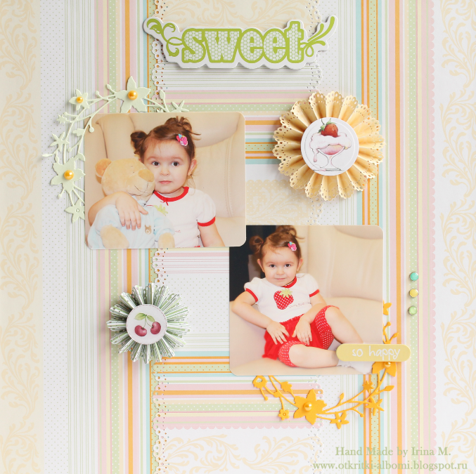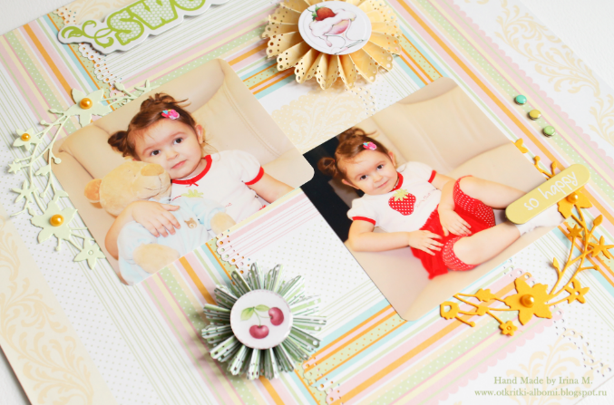 СкрапбукингДавно было желание заскрапить фото Алинки, где она в костюмчике клубнички и вот наконец-то добралась до него. Можно сказать, что это моя первая полноценная страничка.