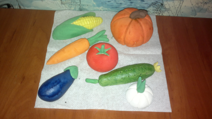 Шикарно, я позавчера тоже овощей налипила. Сохнут пока. Кукуруза и огурчик вообще обалденые. Как настоящие.