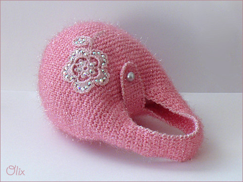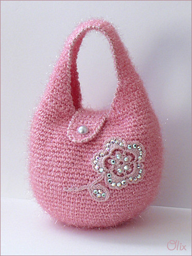 Наткнулась вот на такую замечательную сумочку. Очень понравилась, дочке хочется точно такую же связать именно в таком лёгком перламутровом блеске.