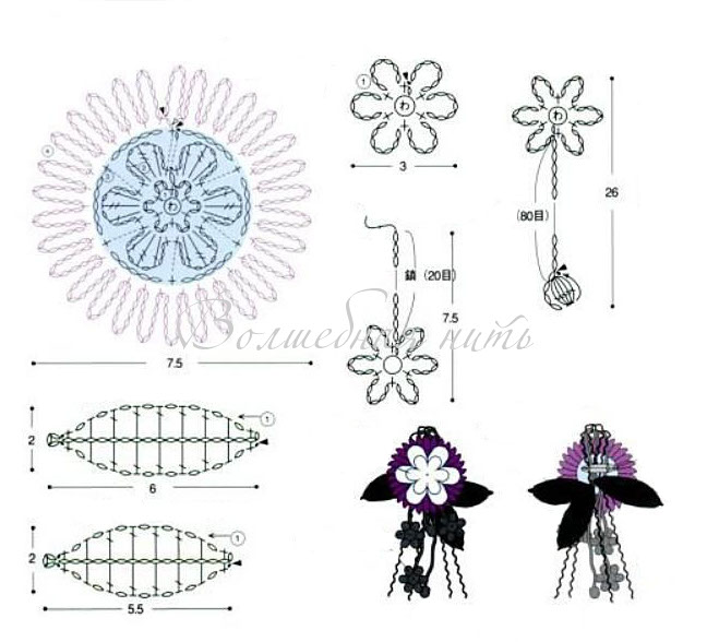 Пряжа - Brilliant от Vita, плечики гнущиеся из магазина Фикс-прайс. Крючек №2. Схема цветочков внизу.