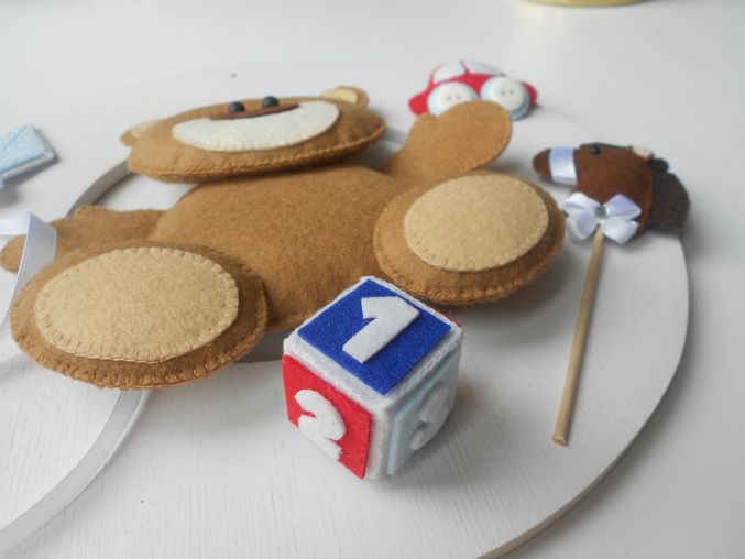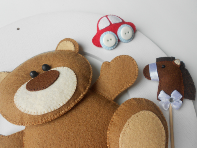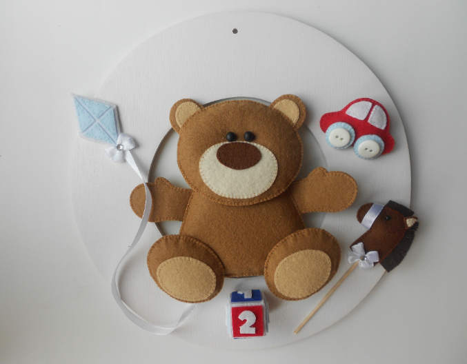 Материалы: основа из дсп, покрашена акриловой краской, сверху будет покрыта лаком, ну и собственно фетр. Сверху есть дырочка, куда вставится ленточка и пано можно будет повесить на дверь или на стену.