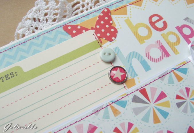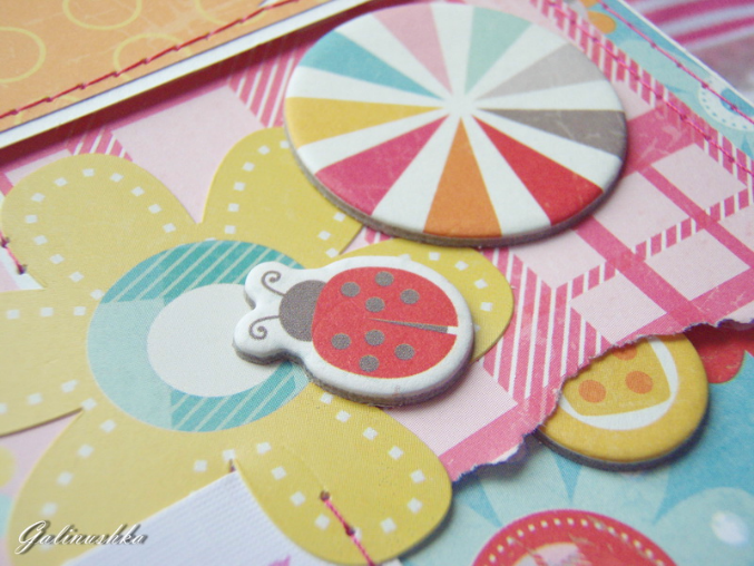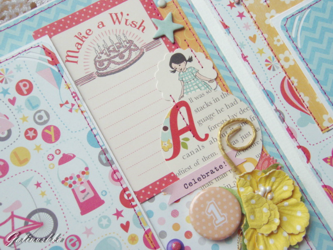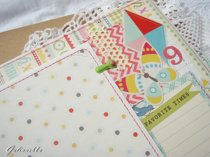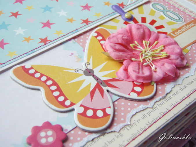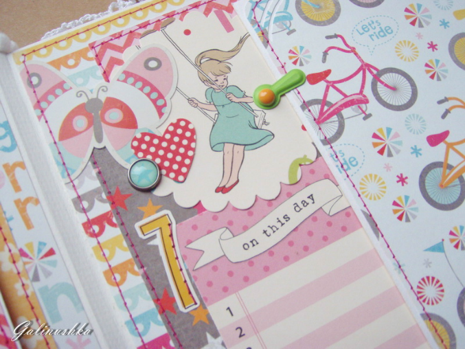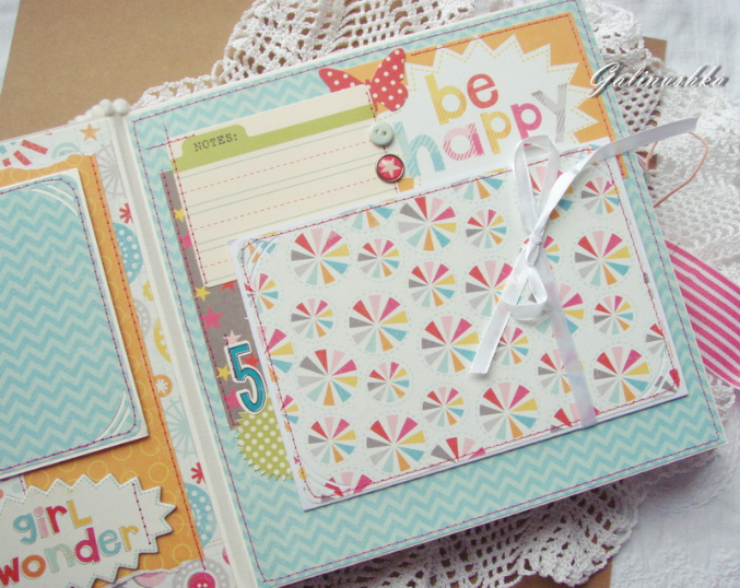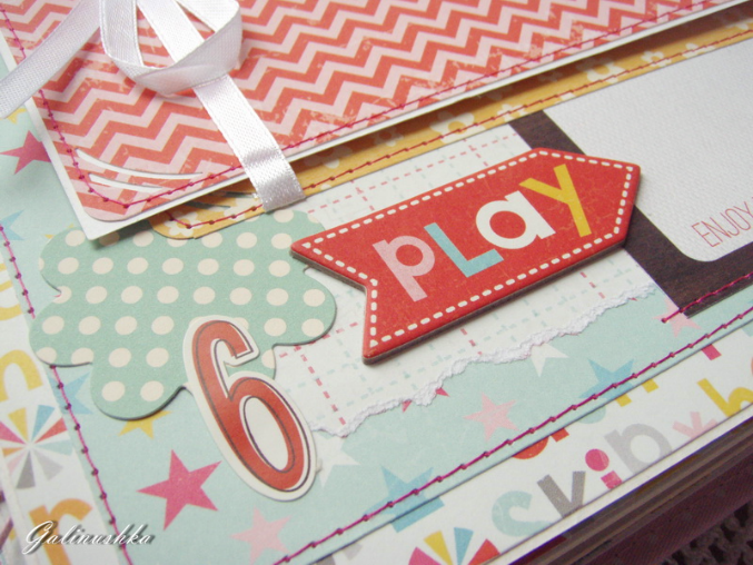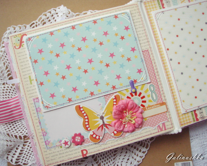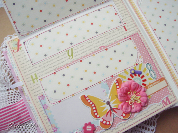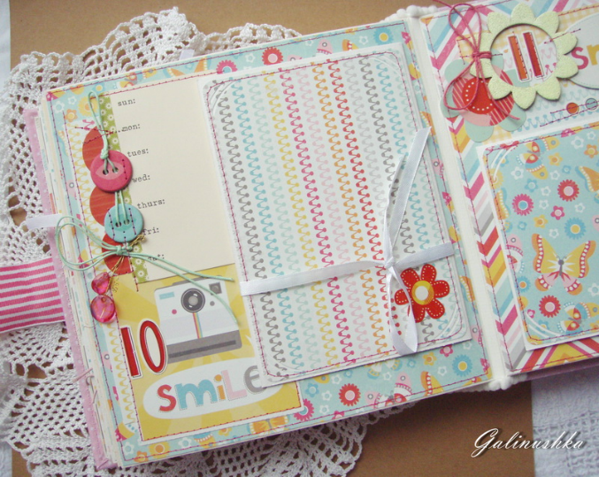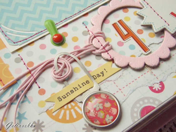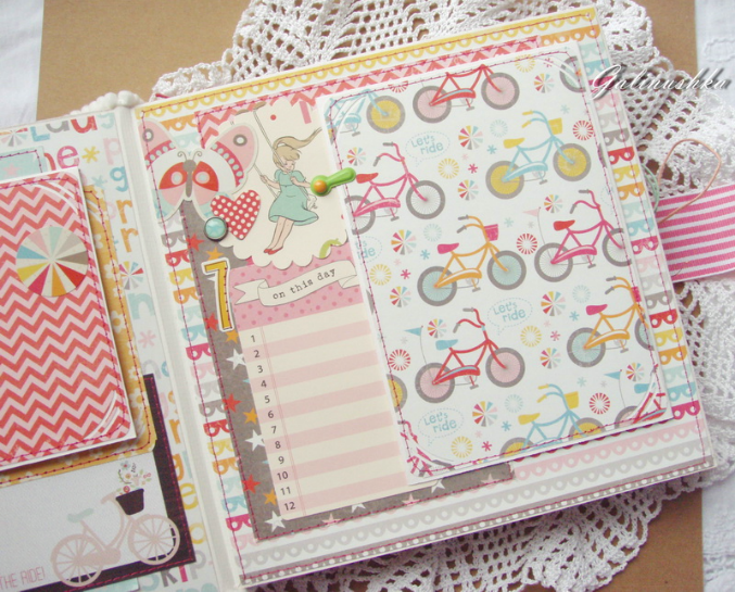 СкрапбукингЯркий, позитивный альбом про первый год жизни малышки Алисии) Формат альбома 21 на 21 см (странички 20*20 см), 14 страниц (7 разворотов), ручной переплет, мягкая обложка) Альбом тематический - от рождения до годика). Вместил в себя около 45 фото стандартного размера 10*15 см)