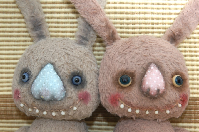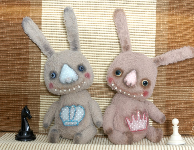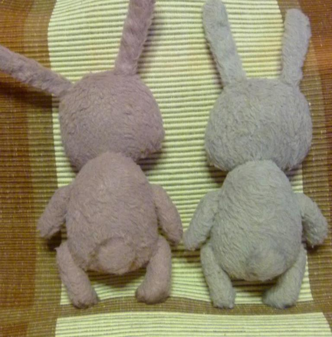 Зайчики сшиты из немецкой вискозы, 5 шплинтов, наполнитель холлофайбер, глазки "Шерстяная лампочка".