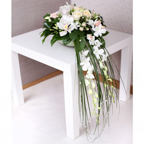 в цветочных, наверно только живая. мне кажется, они иск. не пользуются.... недорого стоит. у нас пучок небольшого берграса рублей 15-20. длинный не знаю сколько.