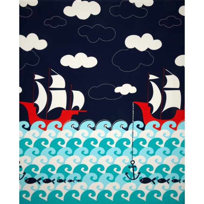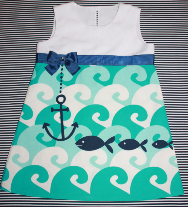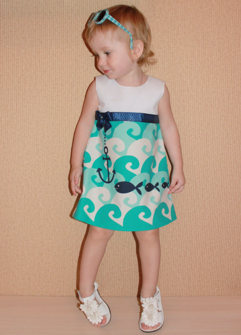 Шитье одежды, выкройки, ремонт одежды, шторы, швейные машины (уже приобретенные)Очень люблю ткани с морской тематикой. Увидела вот эту ткань и сразу же захотелось сшить дочке пышненькое платье с рисунком по подолу, вот только на размер рисунка совсем не обратила внимание, он оказался просто огромным, кораблик - чуть ли не с Полинку размером.