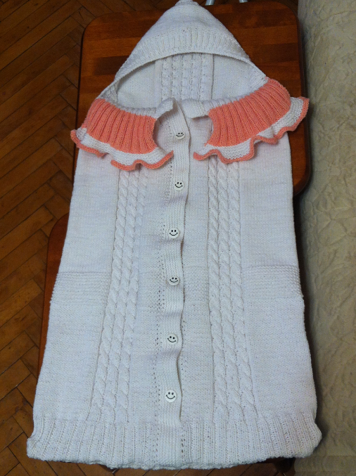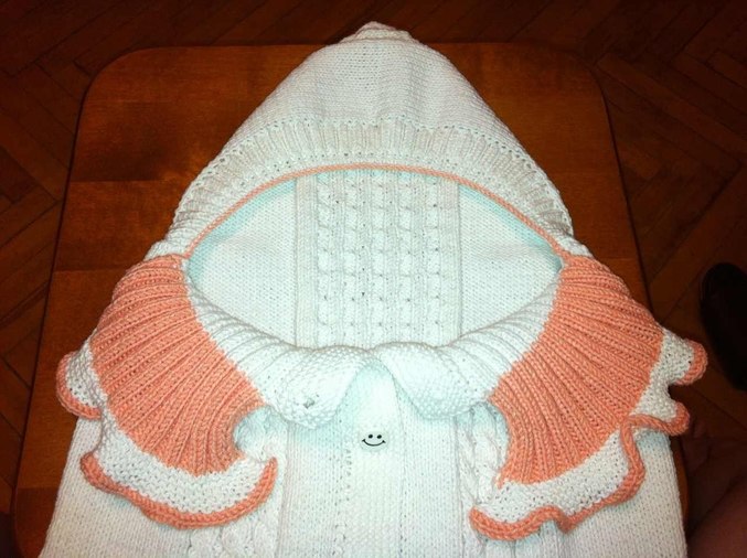 хотелось бы услышать мнение, что бы вы добавили? а то кажется как то простовато...вот думаю может по капюшону по краю обвязать крючком-рюшу сделать кораллового цвета (как на отвороте-воротничке? или может куда то атласные ленточки/бантики вплести? или лучше оставить как есть?
