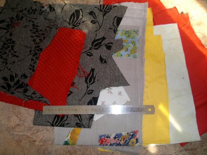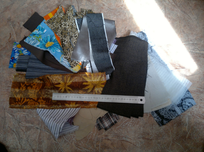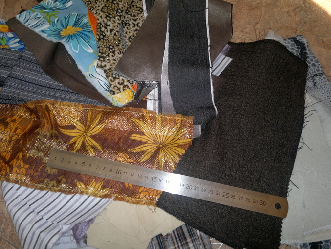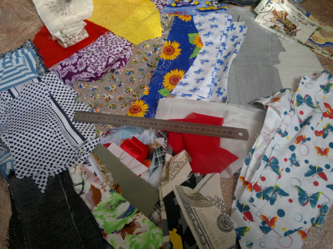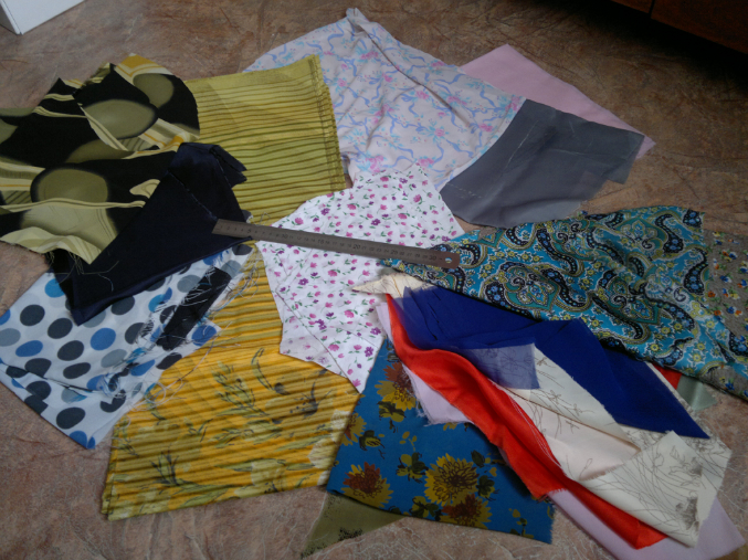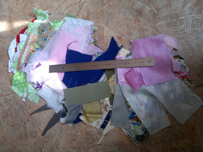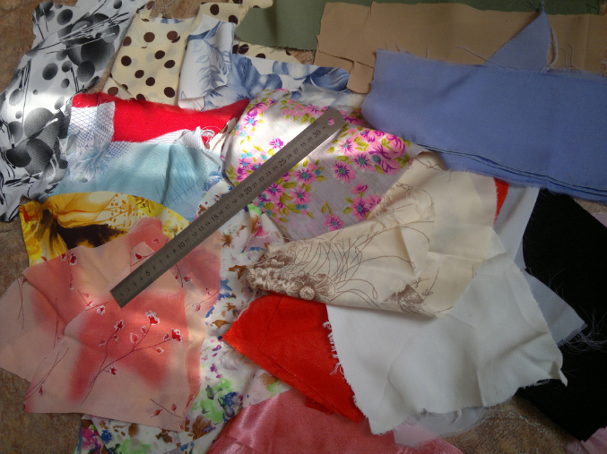 Вот такой ворох лоскутков у меня есть. Кусочки как и говорила разные и большие и средние и маленькие.