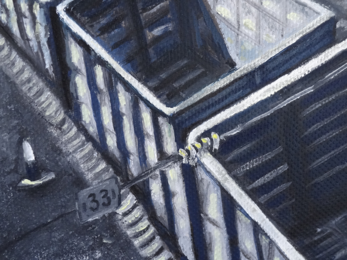 Юль, со всей моей критичность, по мне картина все равно удалась ;) Ракурс не обычный, интересный. Но то что у тебя перспектива не точная по мне это несколько шарма какого-то добавляет. Дает понять что это не фото, а рукописка. Некая загадочность в ней есть.И не смотря на монохромность мне кажется - картина настроения .. смотришь и представляешь себе чтоможет быть в этих вагончиках. Хороший настрой - какие яркости - цветы, конфеты... Не гуд настрой - камушки серые и пр.
