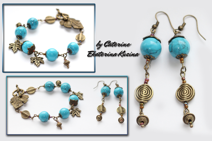 Браслет из восстановленной пресованной бирюзы. И сережки в комплект.