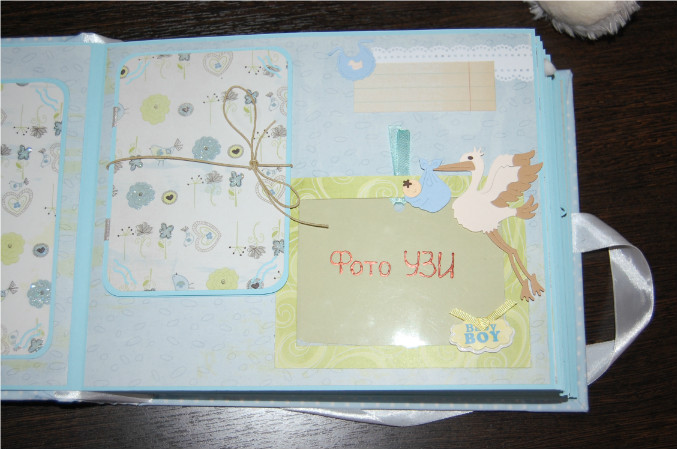 2-й разворот (здесь страничка про беременность, теги для записей, а также карман для фото с узи!)