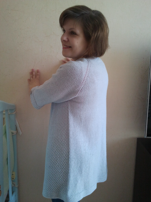 http://www.babyblog.ru/user/MamochkaKarina/3007409, измерила шею, прибавила 2 см, расчитала петли,вяжется с верху вниз, до проймы - всё вместе, а потом рукава снимаем на нитку и вяжем тока перед и спинку, а спицы взяла, соответствующие спицам!