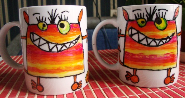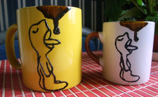 Акриловые краски и контуры по стеклу и керамики + обжиг в духовке.