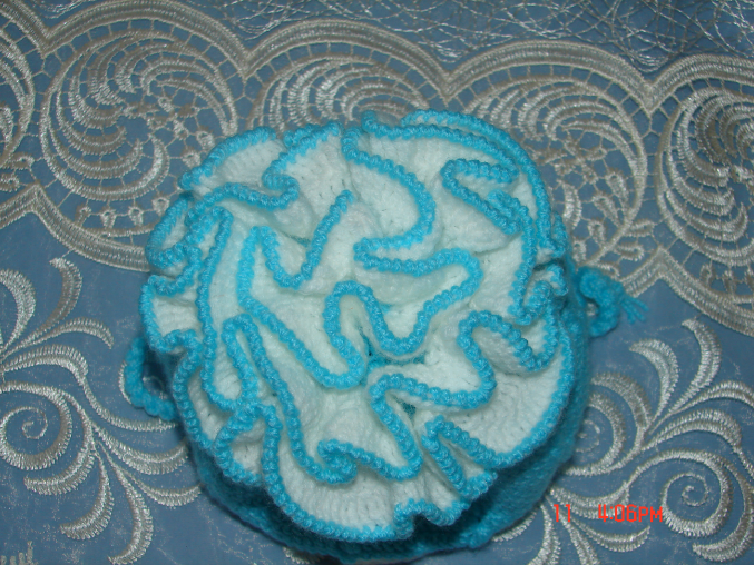 я вязала так - по внутреннему кругу, третьему и пятому 1 ряд столбиками без накида, затем 2 ряда столбиками с двумя накидами ( по две петли в каждую петлю предыдущего ряда), 1 ряд рачьим шагом. пряжа акрил, не тонкая, поэтому хорошо держит форму)