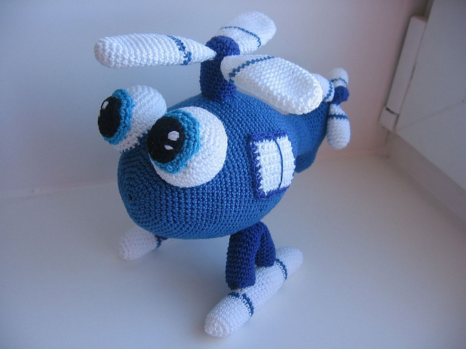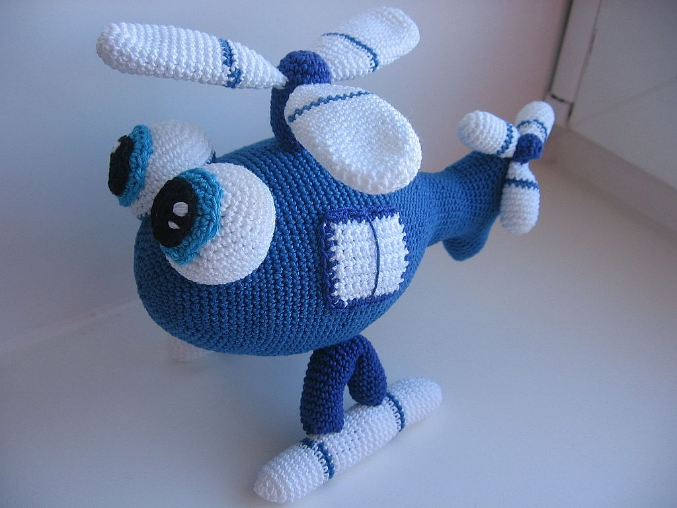 Погремушка довольно многофункциональная: сам вертолет гремит, верхние лопасти (так это называется?) шуршат, хвост пищит. Ну и остальные части мягкие.