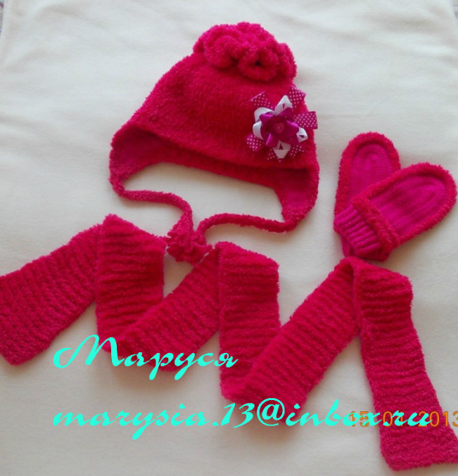 Шапка и варежки крючком, шарф спицами.Пряжа HAPPY, подклад Пехорка Детский каприз.