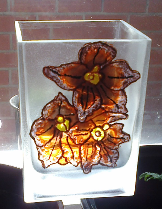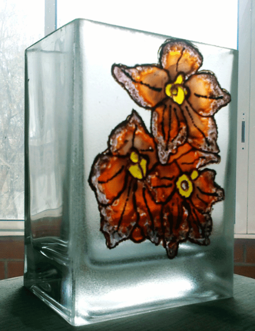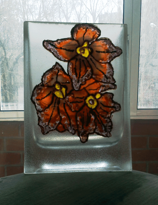 Витражные краски: жидкие и густые, контур по стеклу, медиум для матирования стекла, акриловый лак.