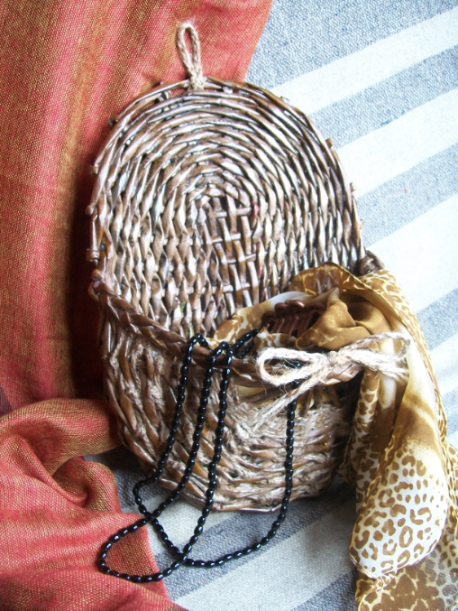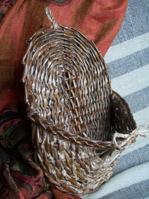 Как всегда в работе были газетные трубочки. Но добавился еще и мною любимый джутовый шпагат.
