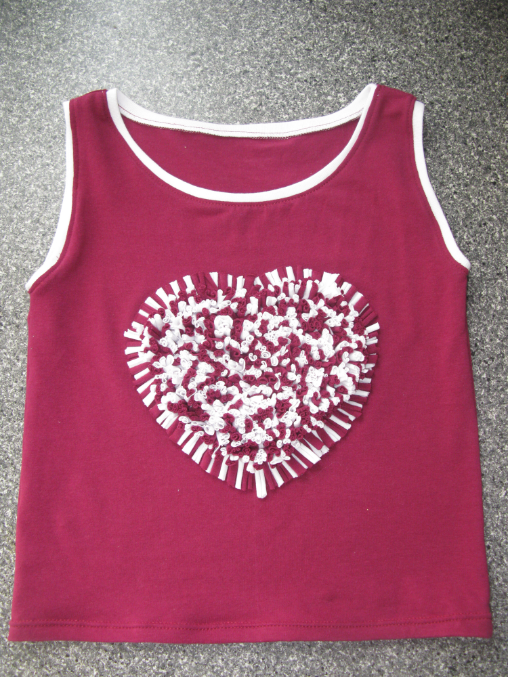 2. Сделала шаблон из бумаги, в виде сердца, перенесла на флизелин, приутюжила на деталь переда. Это нужно чтобы при декорировании ткань не растягивалась.