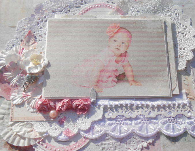хе-хе, ну ты обозвала мое дорогущее винтажное кружево начала 20-ого века лентой))) Да белое б кружево туда тоже ниче вписалось, но у меня его в закромах маловато, на целый альбом не хватило б, а бумажный бордюр делать не захотелось, люблю, когда всякие разные материалы используются)